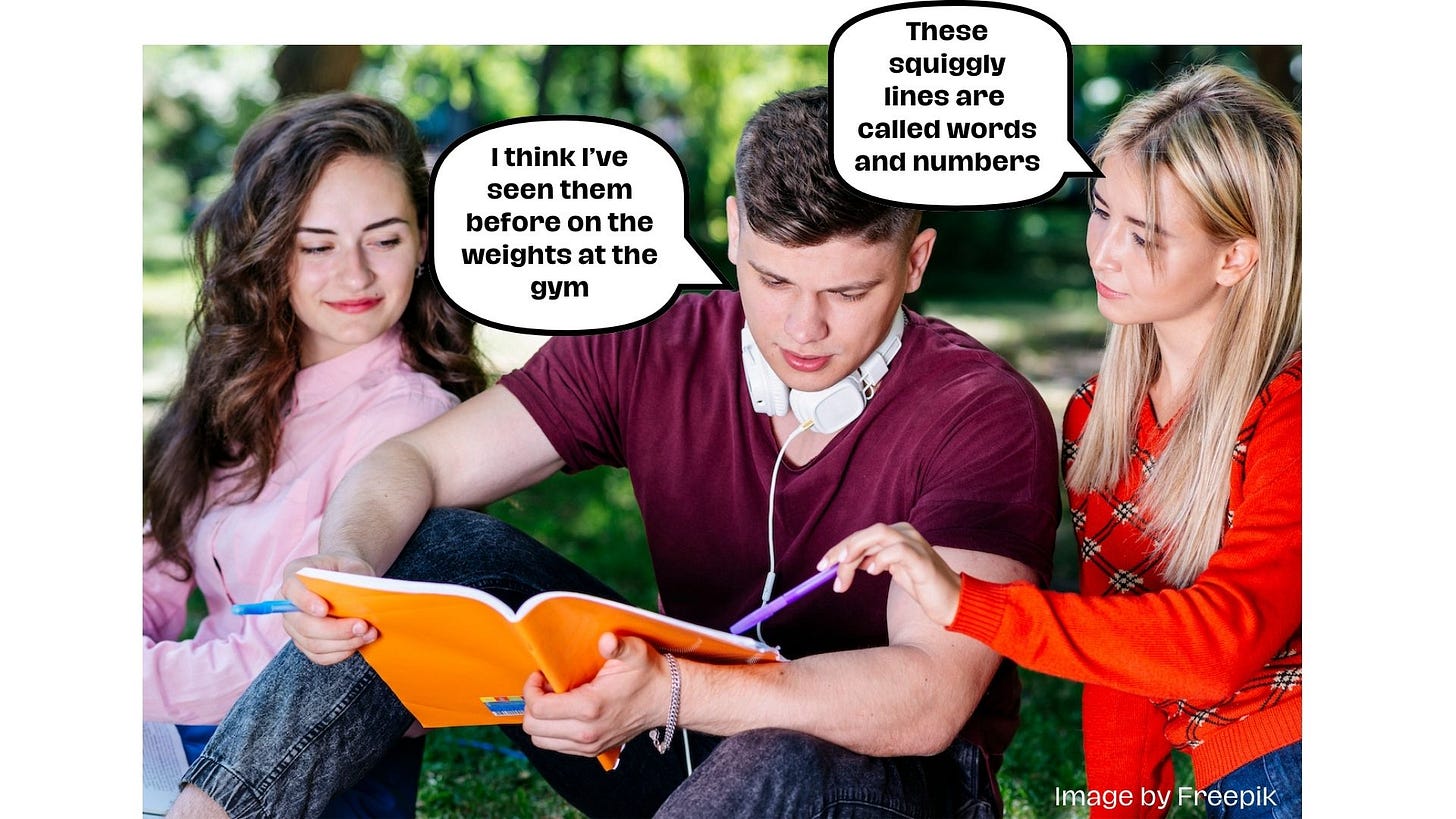 Looking at these words ‘piled up together’ is called ‘reading.’ It’s the source of 92% of knowledge in the world, so you might want to practise.